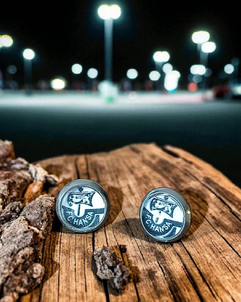 FC Hansa Ohrstecker silberfarben Motiv schwarz-weiß