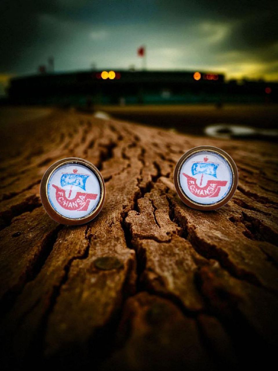 FC Hansa Ohrstecker bronzefarben Motiv bunt