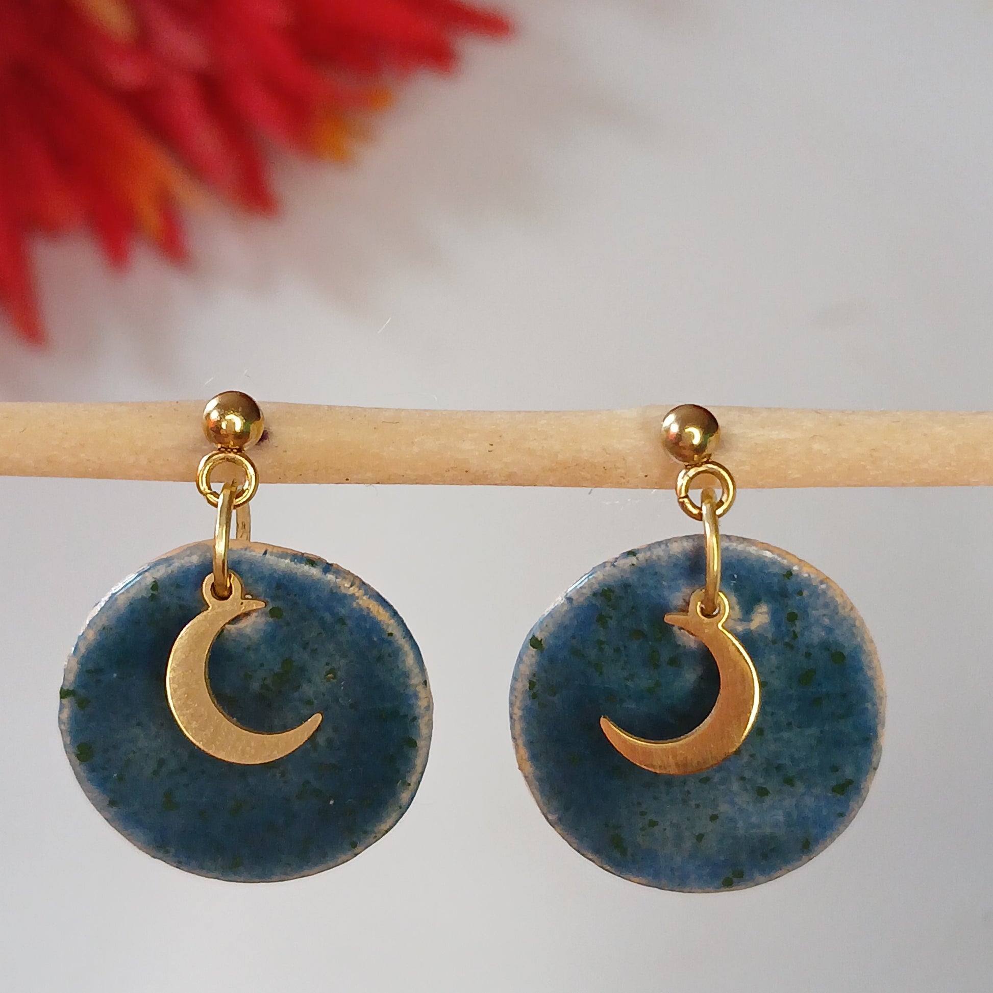 Zu verkaufen ist ein wunderschön handgearbeitetes Ohrhänger-Paar aus Keramik mit einem Motiv aus Edelstahl als Anhänger (ca. 10mm). Die Stecker bestehen aus hypoallergenen/allergikergeeignetem Edelstahl (konkret: Chirurgenstahl). Die Ohrhänger haben eine Größe von ca. 15mm x 20mm. Falls du die konkreten Maße benötigest, schreibe mich gern vorher an. Die Größen können variieren.