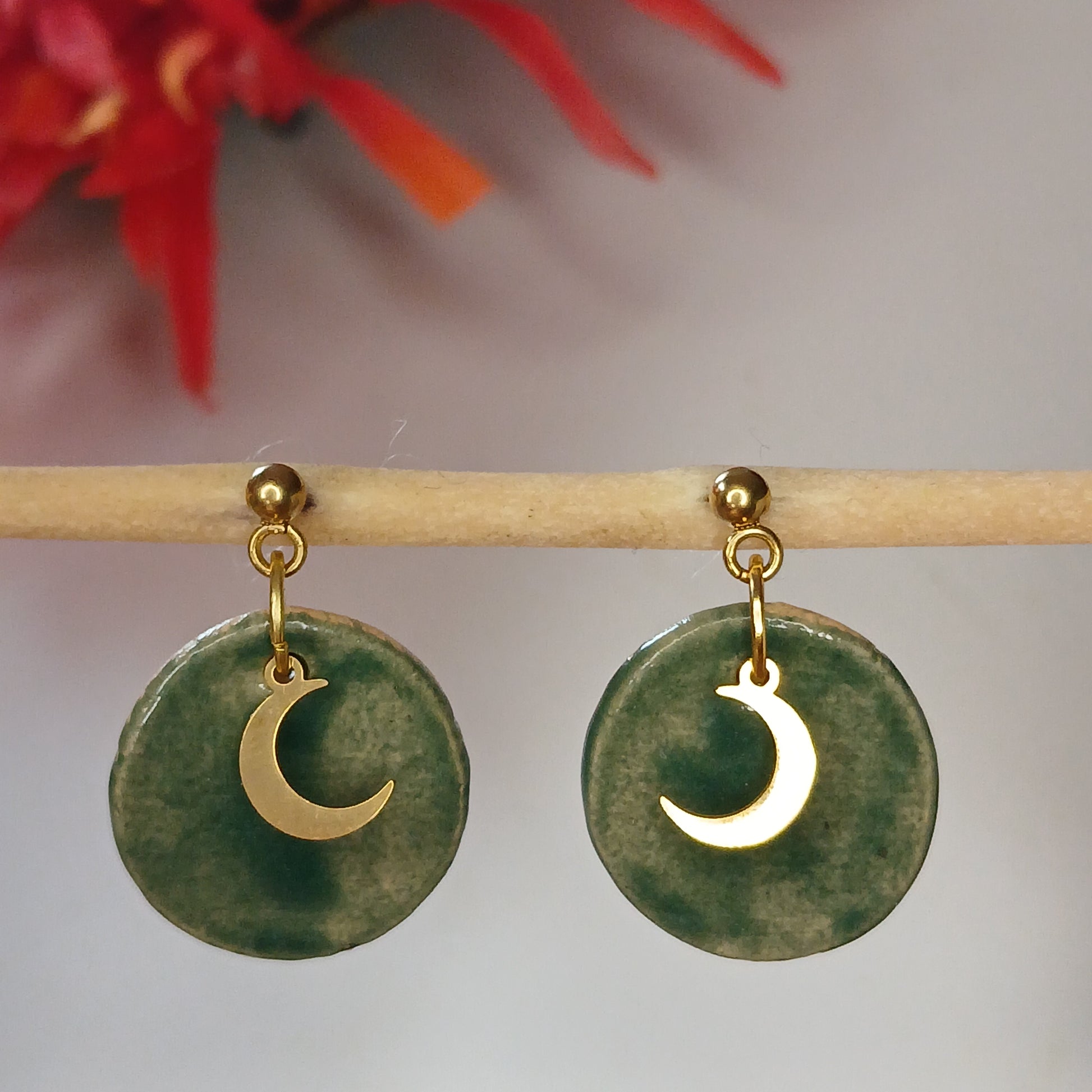 Zu verkaufen ist ein wunderschön handgearbeitetes Ohrhänger-Paar aus Keramik mit einem Motiv aus Edelstahl als Anhänger (ca. 10mm). Die Stecker bestehen aus hypoallergenen/allergikergeeignetem Edelstahl (konkret: Chirurgenstahl). Die Ohrhänger haben eine Größe von ca. 15mm x 15mm. Falls du die konkreten Maße benötigest, schreibe mich gern vorher an. Die Größen können variieren.