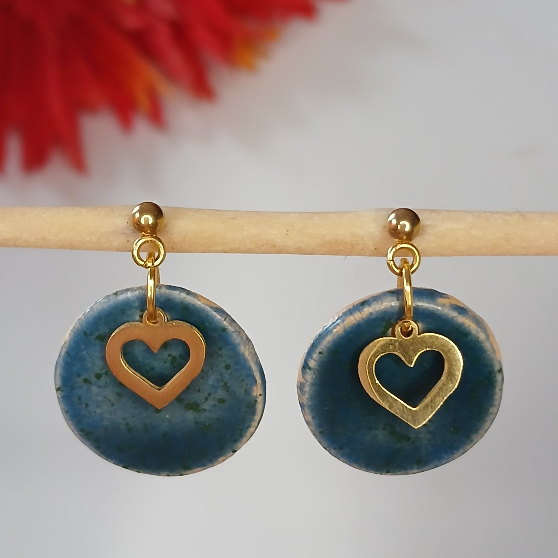 Ohrhänger Keramik "Herz" blau