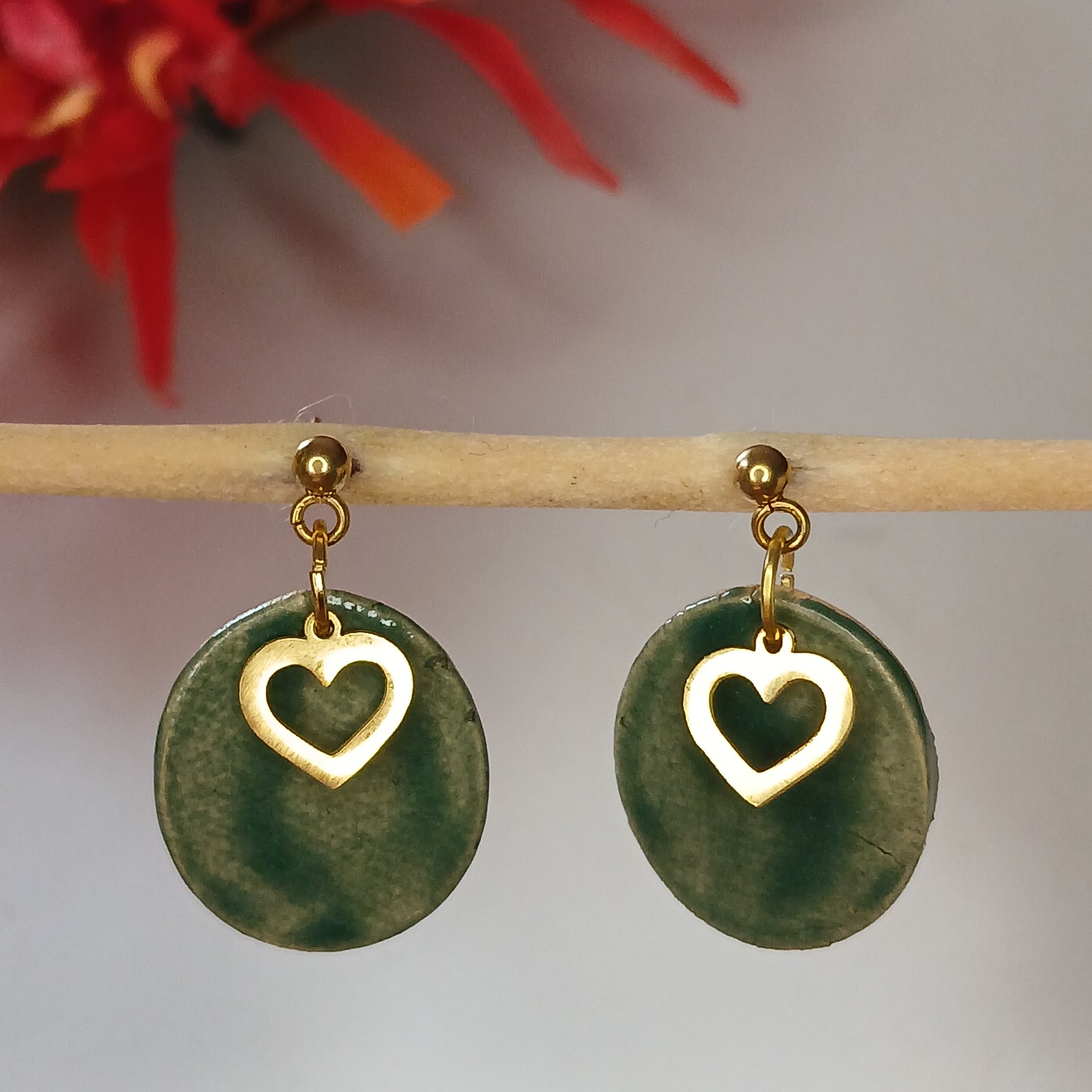 Ohrhänger Keramik "Herz" malachit
