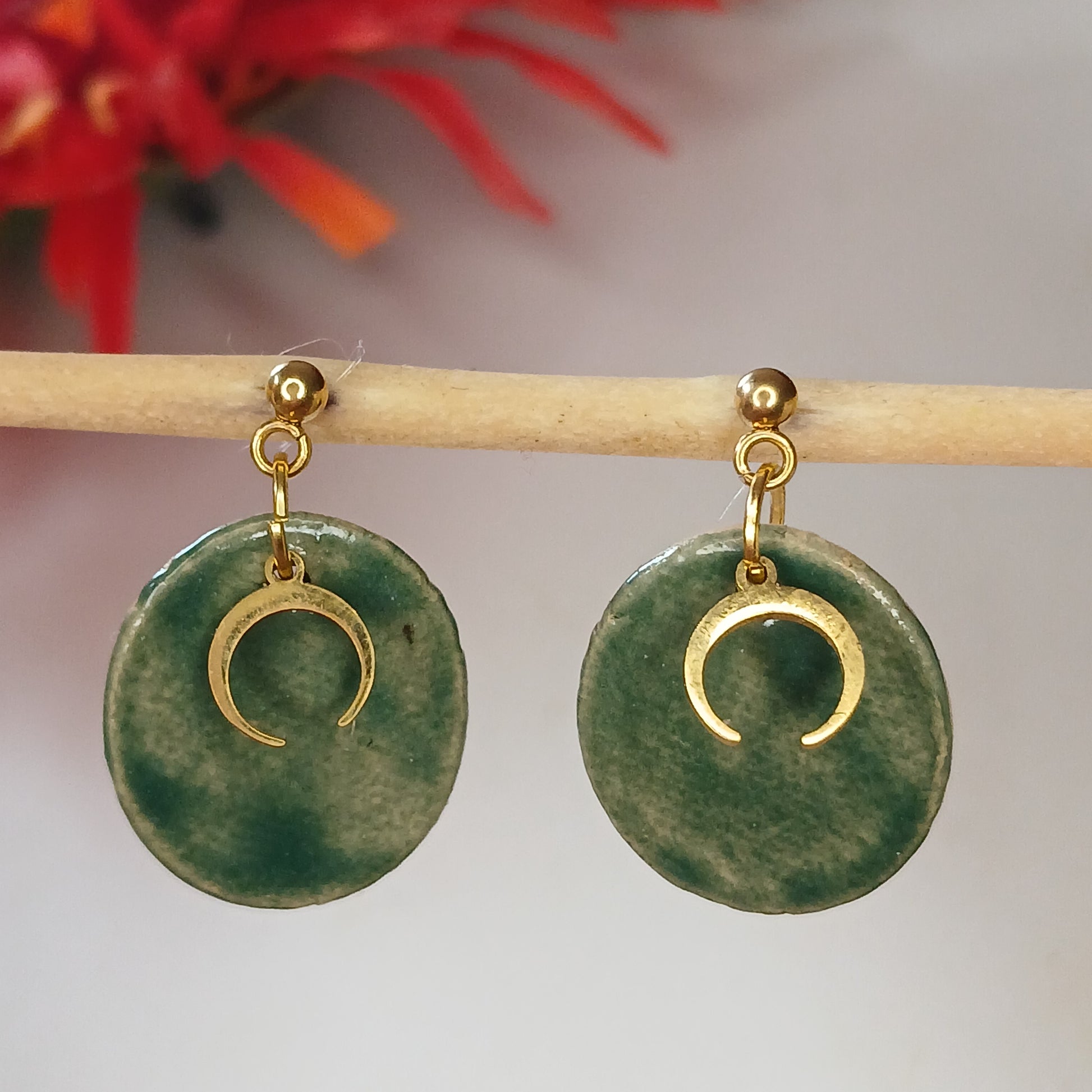 Zu verkaufen ist ein wunderschön handgearbeitetes Ohrhänger-Paar aus Keramik mit einem Motiv aus Edelstahl als Anhänger (ca. 10mm). Die Stecker bestehen aus hypoallergenen/allergikergeeignetem Edelstahl (konkret: Chirurgenstahl). Die Ohrhänger haben eine Größe von ca. 15mm x 20mm. Falls du die konkreten Maße benötigest, schreibe mich gern vorher an. Die Größen können variieren.