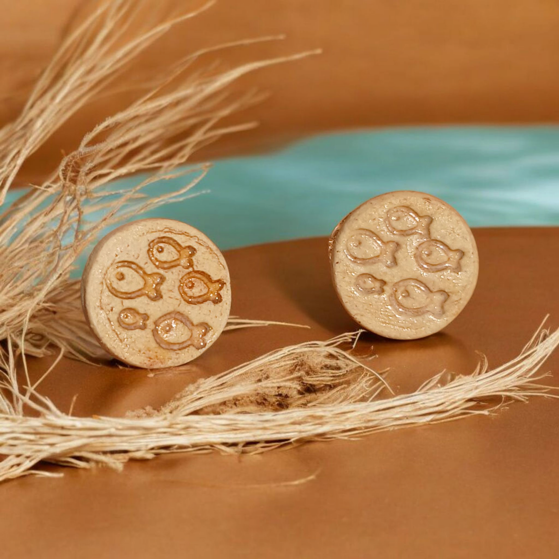 Zu verkaufen ist ein wunderschönes handgefertiges Ohrsteckerpaar mit Fischen als Motiv. Die Keramikplättchen sind mit speziellen Keramik-Metall-Kleber an dem Stecker befestigt. Bei dem Stecker handelt es sich um allergikergeeignetem (nickelfreiem) und rostfreiem Edelstahl (Chirurgenstahl). Die Ohrstecker können beim Duschen oder Baden getragen werden.