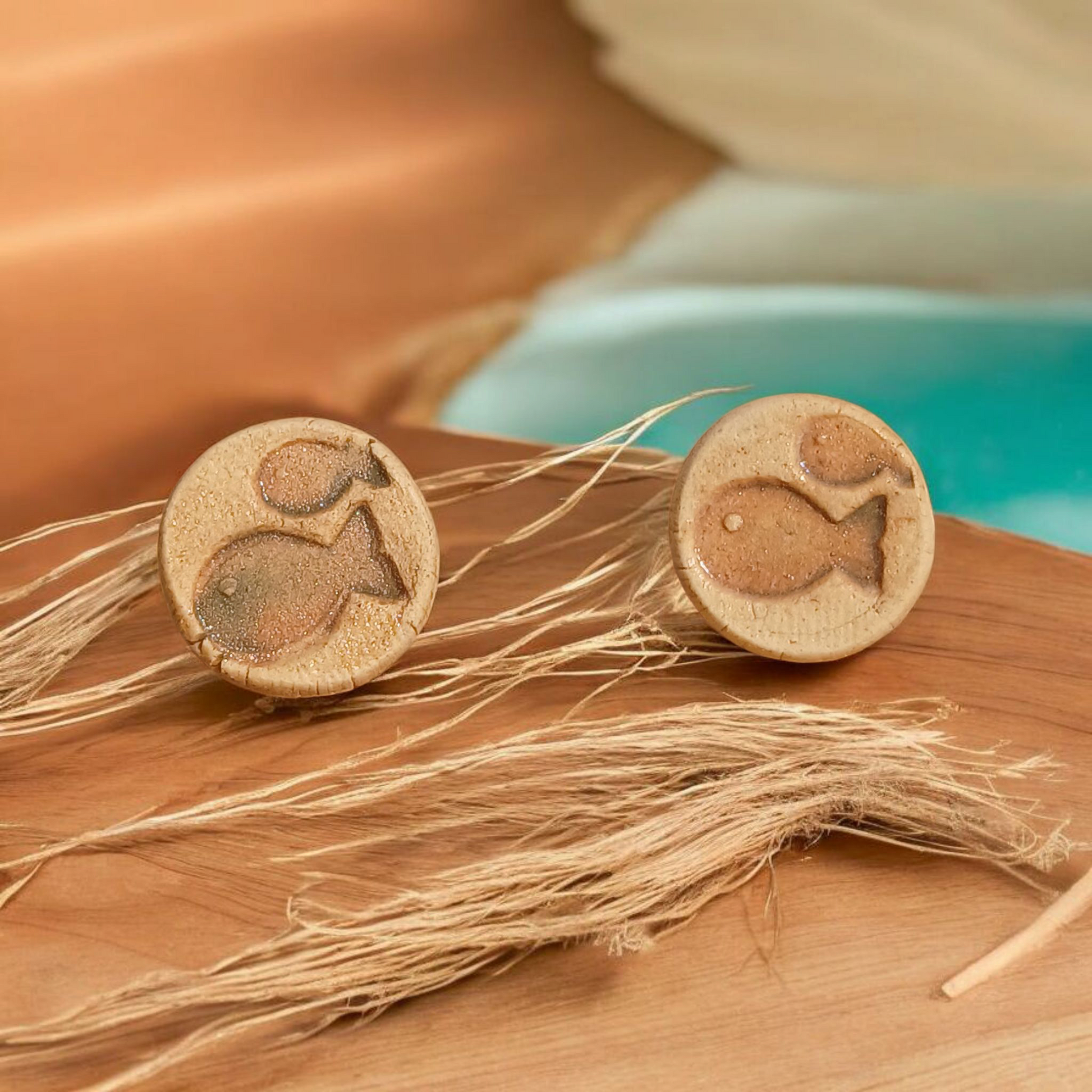 Zu verkaufen ist ein wunderschönes handgefertiges Ohrsteckerpaar mit Fischen als Motiv. Die Keramikplättchen sind mit speziellen Keramik-Metall-Kleber an dem Stecker befestigt. Bei dem Stecker handelt es sich um allergikergeeignetem (nickelfreiem) und rostfreiem Edelstahl (Chirurgenstahl). Die Ohrstecker können beim Duschen oder Baden getragen werden.