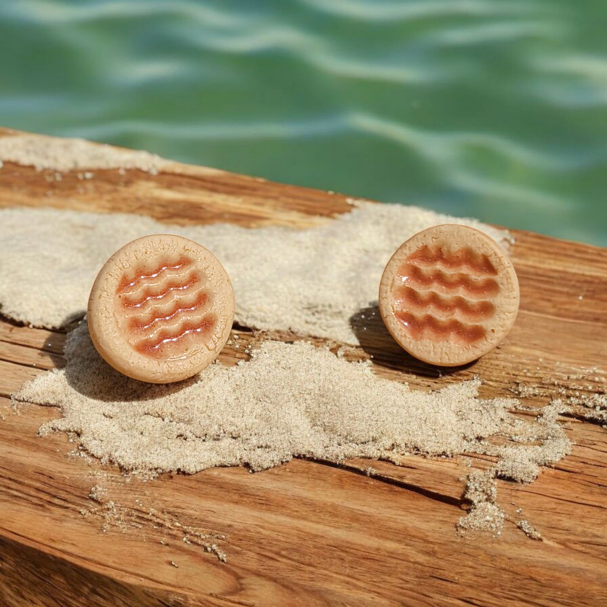 Zu verkaufen ist ein wunderschönes handgefertiges Ohrsteckerpaar mit Wellen als Motiv. Die Keramikplättchen sind mit speziellen Keramik-Metall-Kleber an dem Stecker befestigt. Bei dem Stecker handelt es sich um allergikergeeignetem (nickelfreiem) und rostfreiem Edelstahl (Chirurgenstahl). Die Ohrstecker können beim Duschen oder Baden getragen werden.